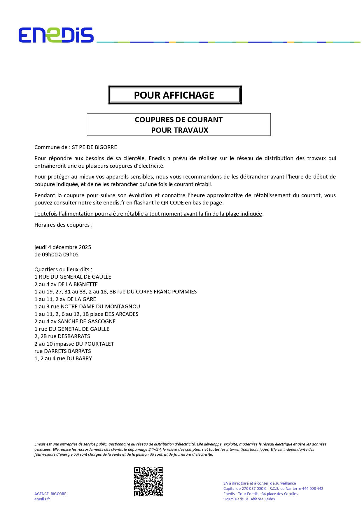 Jeudi 4 décembre à 9h : coupure d’électricité prévue durant 5 minutes
