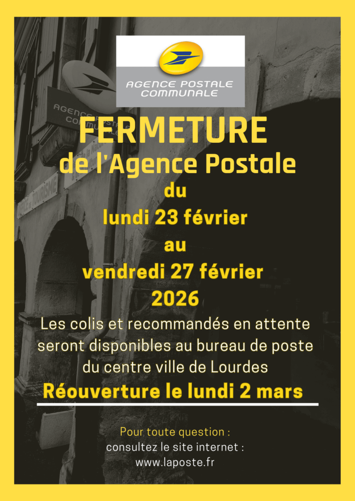 Colis et recommandés en attente seront à retirer au bureau de poste du centre ville de Lourdes.